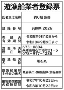 令和6年4月1日施行改正遊漁船業法(遊漁船業法の適正化に関する法律の一部を改正する法律)に基づく遊漁船業者登録票のインターネットでの掲示および利用者の安全及び利益に関する情報(遊漁船業法第23条関係)についてはこちらに掲載しております。