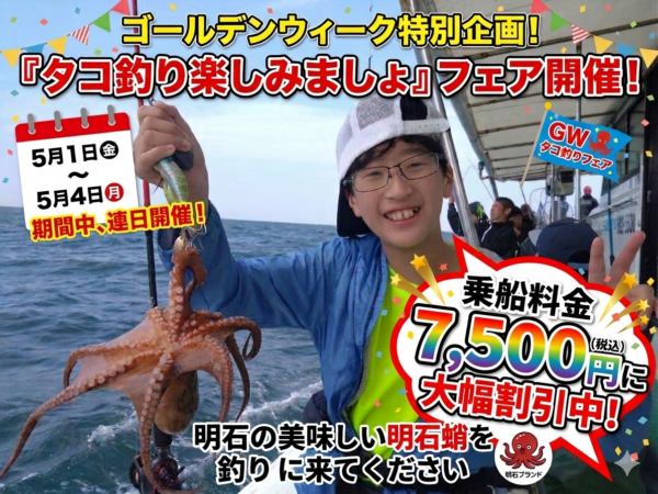 ゴールデンウィークタコ釣りフェア!乗船料金7,500円!!